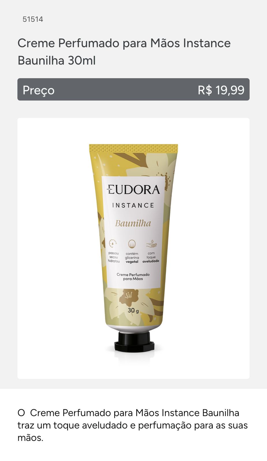 Hidratante de Mãos Baunilha
